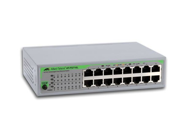 AT-FS716L-50, 16x 10/100Mbps, desktop (mogućnost ugradnje u ormar), fiksna konfiguracija, 1U, unamanaged, Layer 2, Napajanje unutarnje