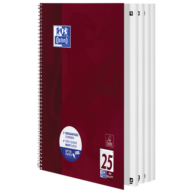 A4+ s 4 rupe i perforacijom; 80 listova; čvrste, kartonske korice; dvostruki spiralni uvez omogućuje 360° okretanje i potpuno pisanje svake stranice; OPTIK PAPER+®, jedinstvena udobnost pisanja, tinta ne prolazi kroz papir; bijela naslovnica na početku i kraju spiralnog bloka; kompatibilan sa scribzee aplikacijom za skeniranje, organiziranje i dijeljenje bilješki