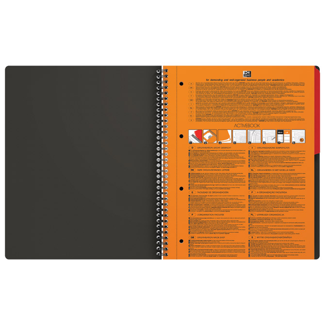 s 4 rupe i perforacijom; PP; 80 listova; sa zaglavljem i dvostrukim marginama; OPTIK PAPER+®, jedinstvena udobnost pisanja, tinta ne prolazi kroz papir; kompatibilan sa scribzee aplikacijom za skeniranje, organiziranje i dijeljenje bilješki; pomicanje PP registra za označavanje prve prazne stranice ili za podjelu bilježnice na 2 dijela; džep za pohranu i prijenos dokumenata; dvostruki spiralni uvez omogućuje 360° okretanje i potpuno pisanje svake stranice; otporna i fleksibilna korica od polipropilena