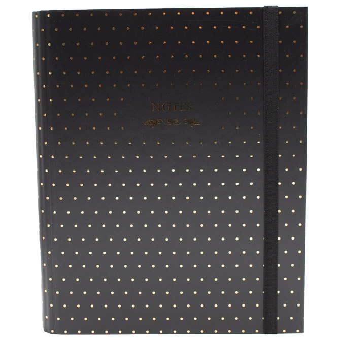 format: B5; dimenzija: 16,5×22,5 cm; crte; tvrdi uvez; 96 listova; 90 g/m2; skrivena spirala; s gumicom Pakiranje: Boja: crna