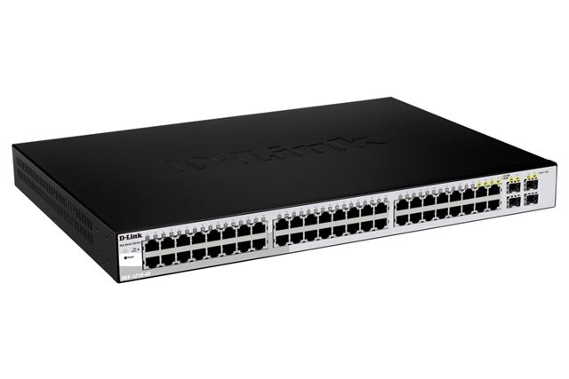 DGS-1210-48, 48 x 10/100/1000Mbps, 4 x Combo 1000BaseT/Mini-GBIC SFP ports, Asymmetric VLAN, Auto Voice VLAN, 802.1p priority queues, MAC/IP filtering, MAC/IP-based ACL,Smart Console Utility, compact CLI, Rackmount
