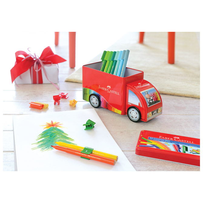 Flomaster školski 33boje u metalnoj kutiji Connector Truck Faber-Castell 155533