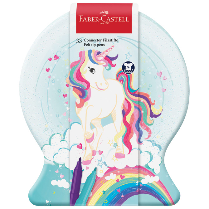 Flomaster školski 33boje u metalnoj kutiji Connector Unicorn Faber Castell 155544