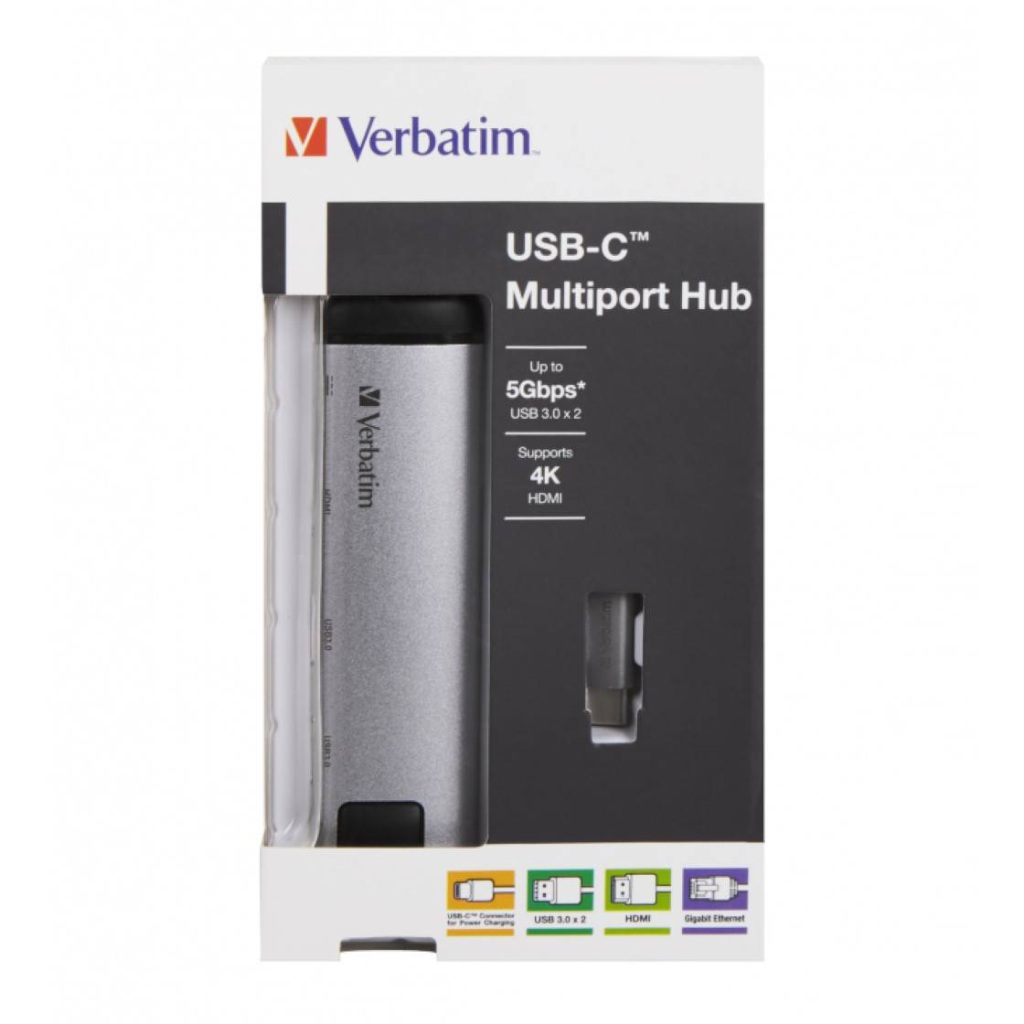 Hub Verbatim #49141 USB-C multport hub USB 3.1 Gen1 USB 3.0×2/HDMI/RJ-45