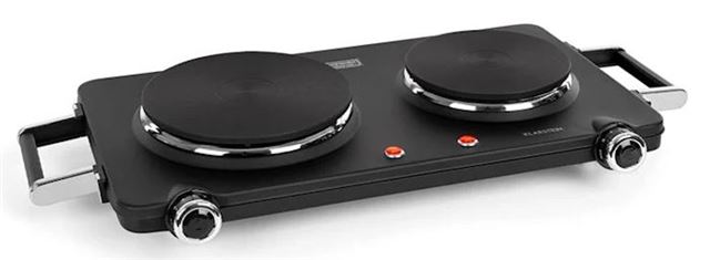 Klarstein dvostruka ploča za kuhanje 10034573. Toplinska snaga dvostruke ploče za kuhanje Klarstein Cookorama regulirana je putem okretnog termostata s 5 postavki grijanja. Gulaš, juha ili dinstano meso će pouzdano biti zagrijano na idealnu temperaturu. Hrskavo povrće i sočne odreske također možete pripremiti na dvije ploče od lijevanog željeza promjera 150 i 180 mm. S izlaznom snagom između 1900 i 2250 W sva će jela biti opskrbljena potrebnom toplinom i za optimalnu pripremu. Uz to, dvije ručke olakšavaju prijenos, dok 2 LED status kontrole pružaju informacije o aktivnim pločama za kuhanje. Ušteda prostora, snaga i praktičnost: Zahvaljujući svojoj maloj veličini i snažnim performansama, dvostruka ploča za kuhanje Klarstein Cookorama vrlo je pogodna za studentske domove ili manja kućanstva.
