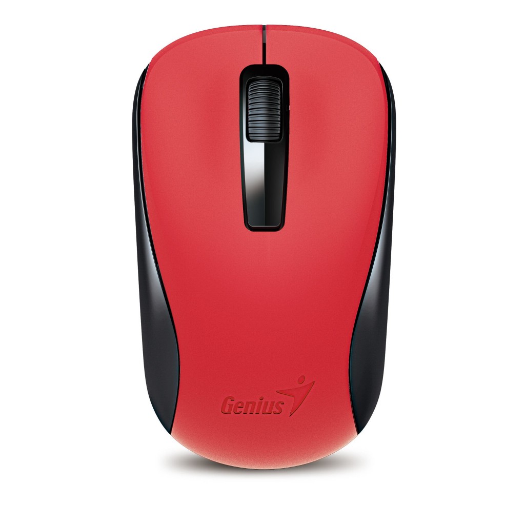 Opis: Miš Genius sa bežičnim povezivanjem u crvenoj boji, prilagođen za obe ruke.