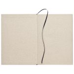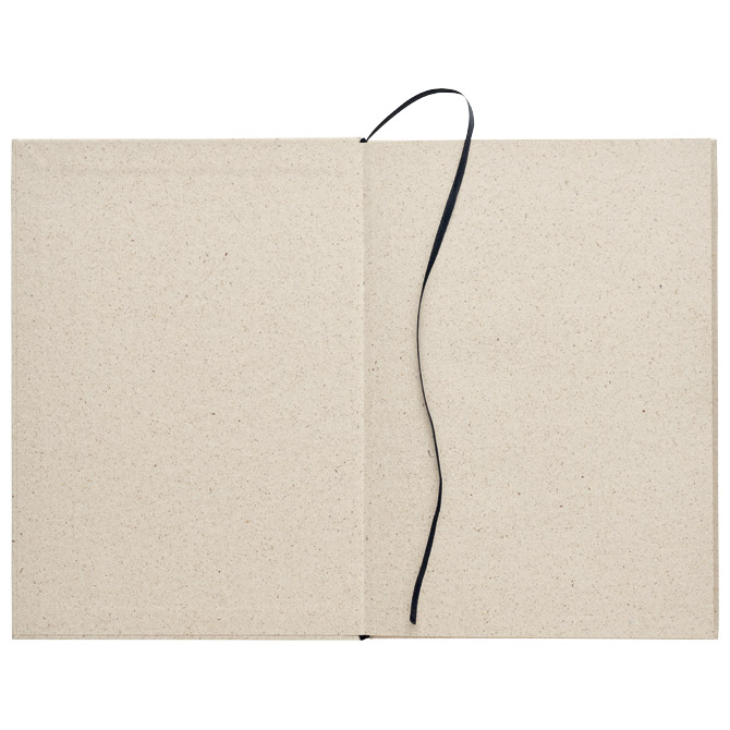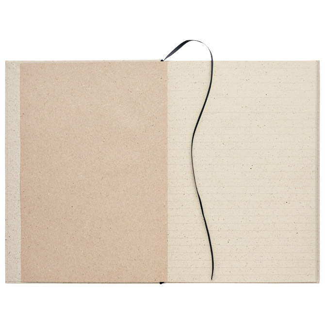 format: A5; dimenzija: 150×210 mm; crte; 80 listova; šamoa; tvrde korice; s gumicom (crna); označivač stranica; izrađen od od recikliranog papira i trave
