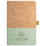 A5 notes sa koricma od pluta i lana na dnu naslovnice. Notes ima 192 bež stranice na linije nabaljene (70 g/m2), izrađenom od FSC™ certificiranog materijala i drugih kontroliranih materijala, i držač za olovku (olovka nije uključena) dimenzije 140 x 210 mm