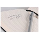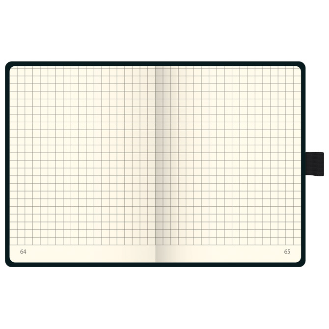 96 listova, šamoa; 80 g/m2; visokokvalitetan papir kroz koji ne prolazi tinta; s gumicom (crna), 2 označivača, mjesto za olovku, 2 etikete, 1 etiketa za ime, zastavice i džep na zadnjoj korici; stranice su numerirane; zadnjih 8 listova je perforirano; tvrde korice sa zaobljenim rubovima