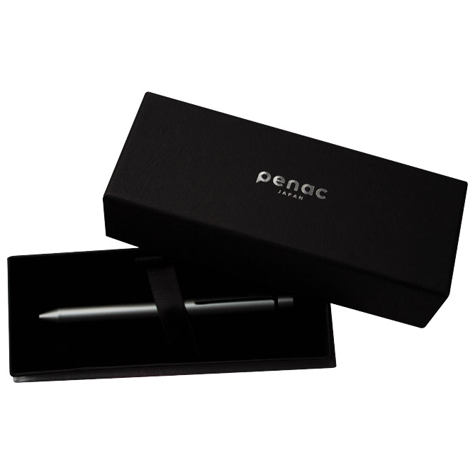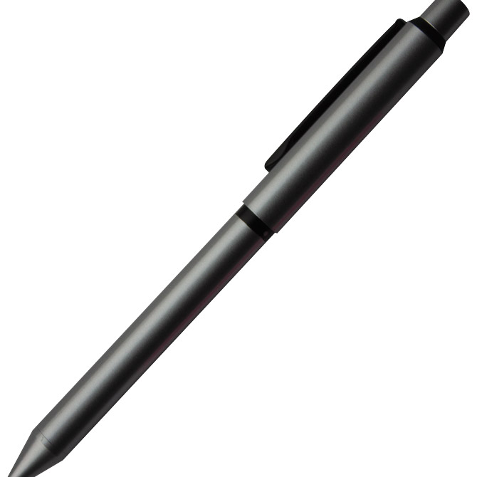 2 kemijske: 1 crvena i 1 plava tinta (mach ink) i tehnička olovka (mina 0,5 mm); okretni (twist) mehanizam (360°) u oba smjera; sa indikatorom koja olovka je odabrana; metalno tijelo olovke; mat crna metalna klipsa i prsten; Mach tintu karakterizira niska viskoznost koja stvara osjećaj lagodnog klizanja po papiru; s gumicom (bez lateksa i PVC-a); rezervni uložak D1BR6707 (0,7 mm); u poklon kutiji