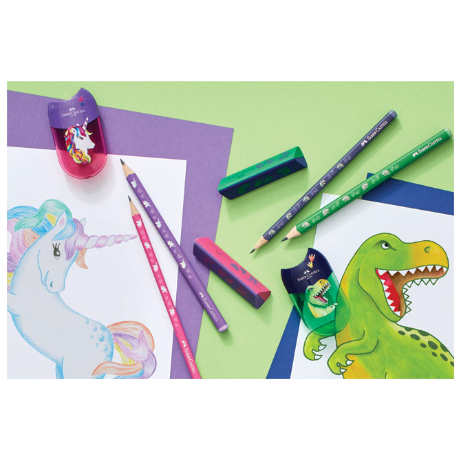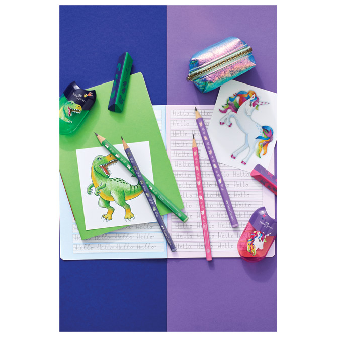 tvrdoća: HB; šiljena; debljina mine: 2,0 mm; bez gumice; ergonomska; trokutasta; vrhunske kvalitete; za pisanje, crtanje i skiciranje; tijelo lakirano eko lakom na bazi vode; na tijelu su motivi u 3D i foliji; posebno je otporna na lomljenje (specijalno spajana – SV); eko olovka (drvo iz certificiranog održivog šumarstva)