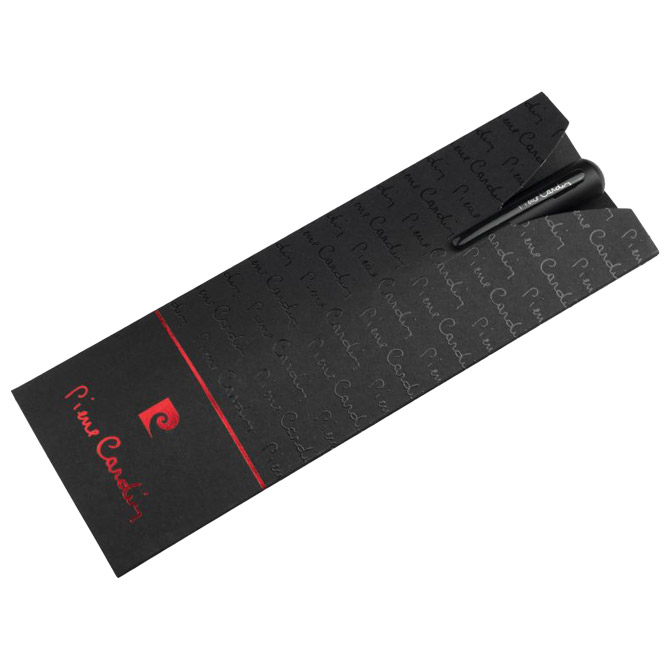 metalna i lakirana u prekrasnom crnom mat završetku; ima ugodnu i praktičnu sjajnu kopču; širina ispisa 1 mm; boja tinte: plava; pakirana je u luksuznu Pierre Cardin džepnu futrolu i dolazi s certifikatom autentičnosti