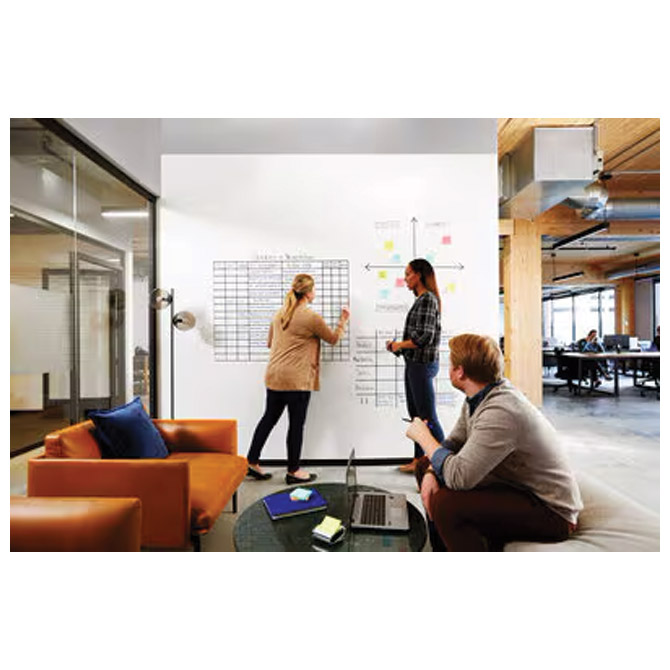 Oslobodite svoju kreativnost bilo gdje uz Post-it® Easy Erase Whiteboard Rolls- omogućuju vam da brzo pretvorite bilo koju površinu u bijelu ploču i pustite svoju kreativnost da slobodno teče. Jednostavno odmotajte materijal, skinite podlogu i zalijepite ga na bilo koju glatku površinu. Obrežite ga na bilo koju veličinu za savršeno pristajanje. Mat glatka površina filmova za bijelu ploču Easy Erase nudi iskustvo pisanja bez napora. Bilo da razmišljate o idejama ili ocrtavate projekte, vaša olovka klizi neprimjetno, dopuštajući vašim mislima da zauzmu središte pozornosti. Easy Erase materijal otporan na mrlje osigurava da se markeri za suho brisanje lako obrišu priloženom krpom. Čak se i trajni tragovi markera brišu samo vodom, ne ostavljajući nikakav trag. Preobrazite svoj prostor obnavljanjem površine školske ploče, zamrljane bijele ploče ili prekrivanjem cijelog zida. S upotrebom trajnih markera manja je mogućnost slučajnog razmazivanja ili brisanja. Easy Erase sigurno se lijepi na razne površine kao što su obojeni suhozidi, gotovo drvo, staklo, obojeni čelik, bijele ploče i table. Ali kada budete spremni ukloniti ga, budite sigurni, skida se čisto, ne ostavljajući ljepljive ostatke ili oštećenja. Dizajniran za jednokratnu primjenu na zidu, nudi dugotrajnu upotrebu bez ikakvih problema. Unaprijedite svoje napore