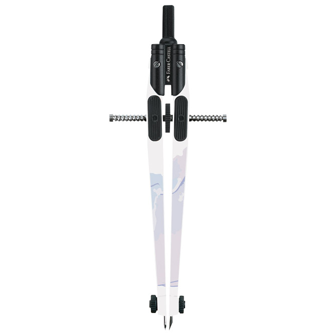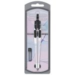 metalni; 3D dizajn; s preciznim podešavanjem; najveći promjer kružnice 390 mm; sadrži i tubu mina; PVC kutija; za školu i fakultete; blister