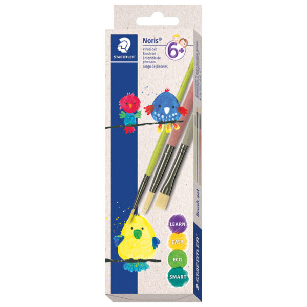 sadrži: 2 kista za vodene boje (2 i 8) i 1 kist za tempere (8); sintetička (umjetna) vlakna otporna na savijanje; lako se čiste; drška izrađena od recikliranih materijala s dodatkom slame; pogodno za razne tehnike slikanja s temperama, vodenim i akrilnim bojama; u kartonskoj kutiji; blister