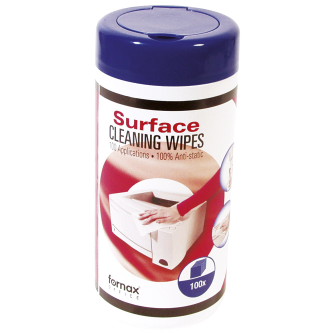vlažne maramice; učinkovito čiste plastiku, metal i plastificirane površine uključujući tipkovnice, pisače i stolove; ne preporučuje se za staklo; sprječavaju statički efekt; set od 100 komada