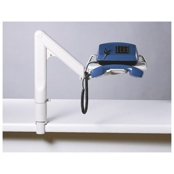 okretni stalak (360o); za jedan telefon; s teleskopskom rukom; dimenzija: visina ruke 415 mm, duljina ruke 556-792 mm, visina postolja 72-270 mm, postolje 175×250 mm; za stol debljine 15-75 mm; s držačem kablova