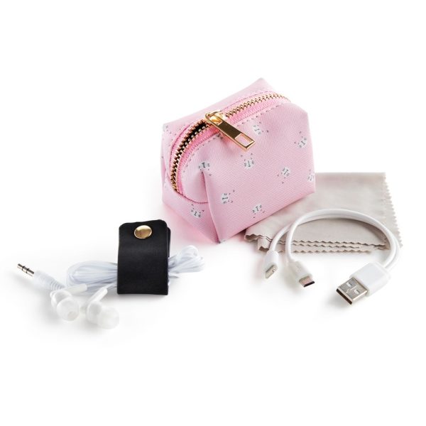 Uključuje: slušalice, krpicu za naočale ili elektroničke uređaje, kabel punjača i traku za organiziranje kabela