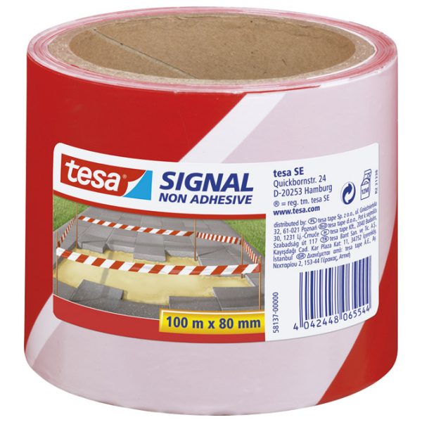 dimenzija: 80 mm x 100 m; nije ljepljiva; PE folija; za označavanje privremenih prepreka i opasnih područja; tiskana obostrano; tinta otporna na razmazivanje; otporna na UV zrake (3 mjeseca)