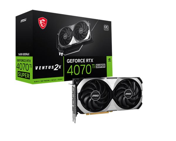 RTX 4070 SUPER 12G VENTUS 2X OC, NVIDIA GeForce, RTX4070S, PCIe 4.0 x16, 12288, GDDR6X, 192-bit, 2.505 MHz, Takt memorije 21.000 MHz, 3x Display port, 1x HDMI 2.0, 7680×4320